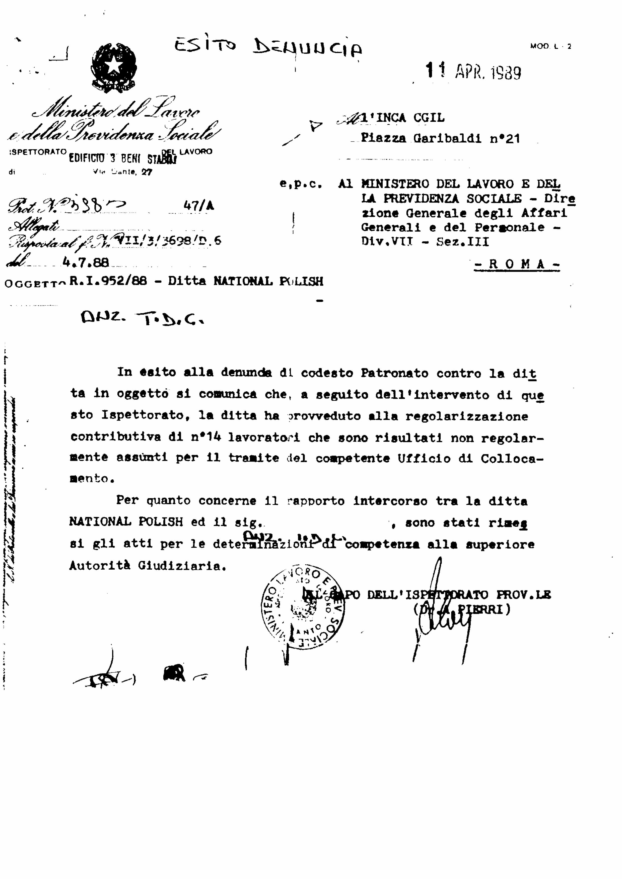 • (LDC) REPARTO DELLA FILIALE PROGETTI E COSTRUZIONI