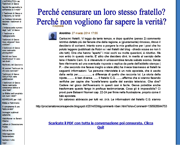 • Sei un ex testimone di Geova? Mandami la tua testimonianza da pubblicare