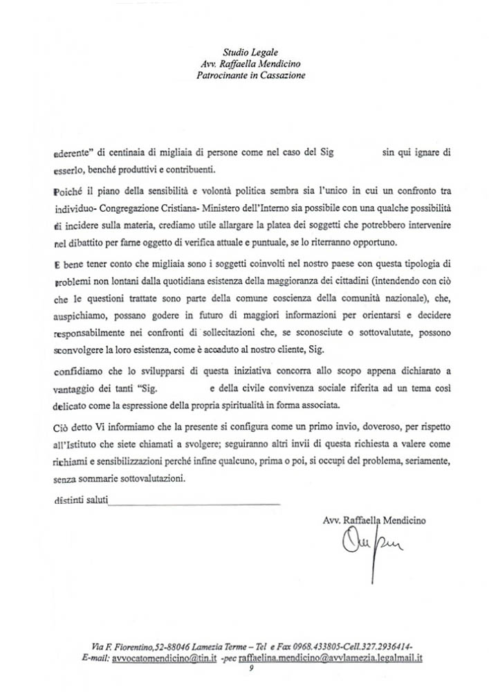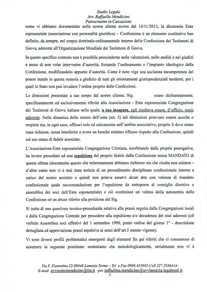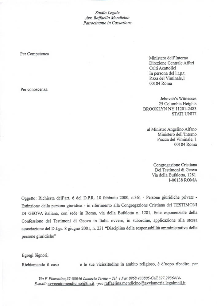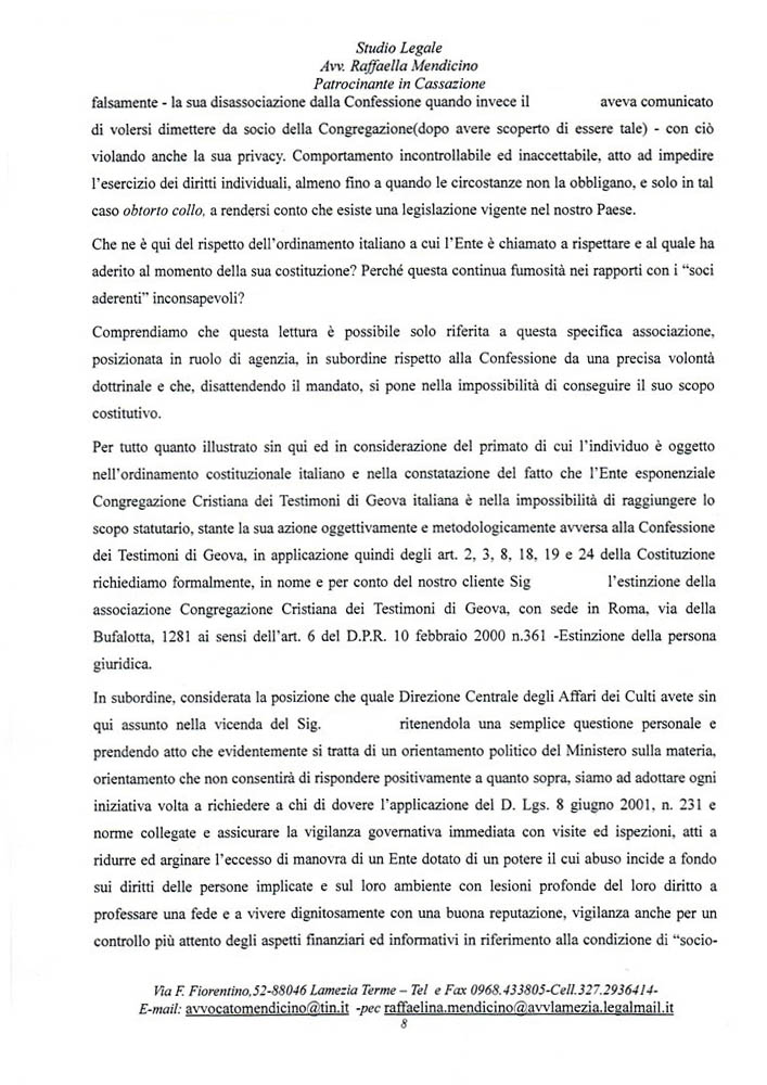 DOCUMENTO MOLTO IMPORTANTE – ESTINZIONE DELLA PERSONA GIURIDICA DALLA CONGREGAZIONE CRISTIANA DEI TESTIMONI DI GEOVA. 29/12/2014