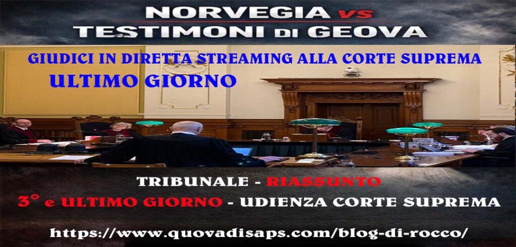 AvoidJW trasmette in streaming live l’udienza della Corte Suprema sulla nostra homepage. Di seguito un riassunto con le citazioni delle traduzioni di ogni giorno.